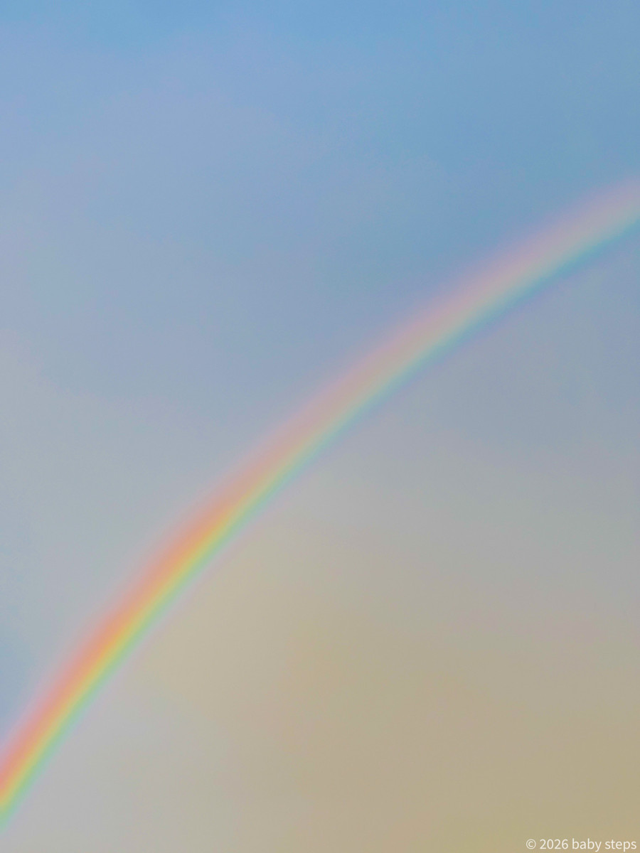 夕方、雨上がりの空に大きな虹がかかった🌈